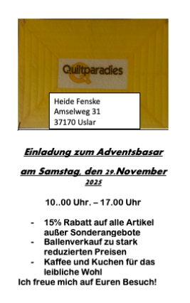 Herzliche Einladung zu meinem Adventsbasar am Samstag, den